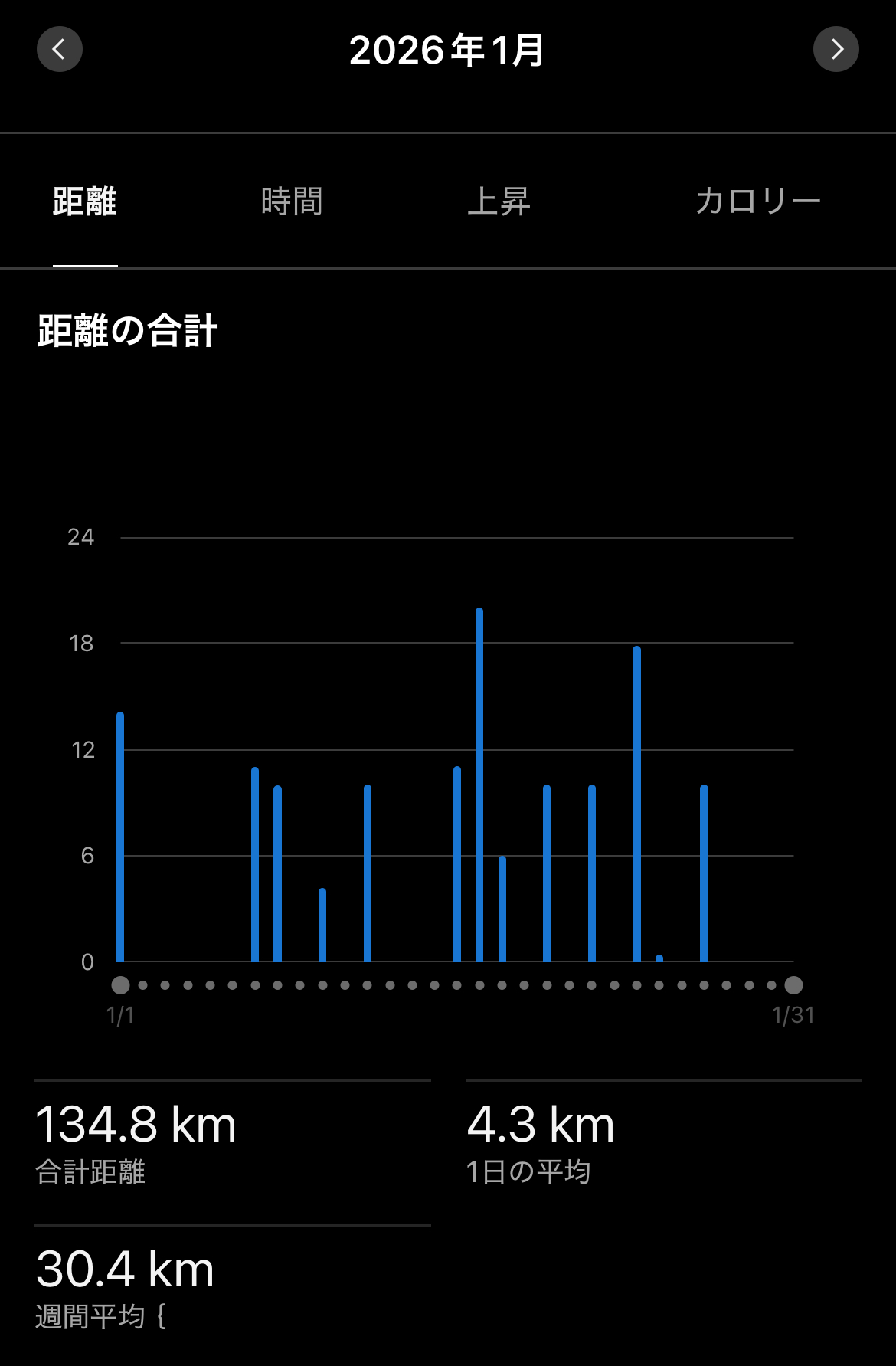 僕はてっきりGarminコネクトで月間走行距離の確認になかなかたどり着けなかったので、このスポーツのアプリをダウンロードし、これで確認していました。