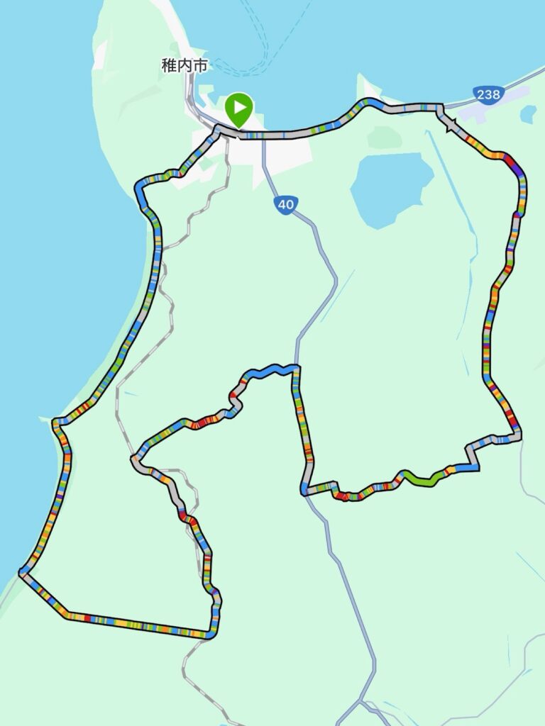 そこから「こうほねの家」→「ミルクロード」→「稚内空港」へと抜ける約72.5kmの周回コースです。